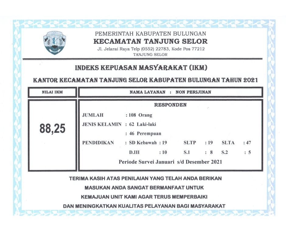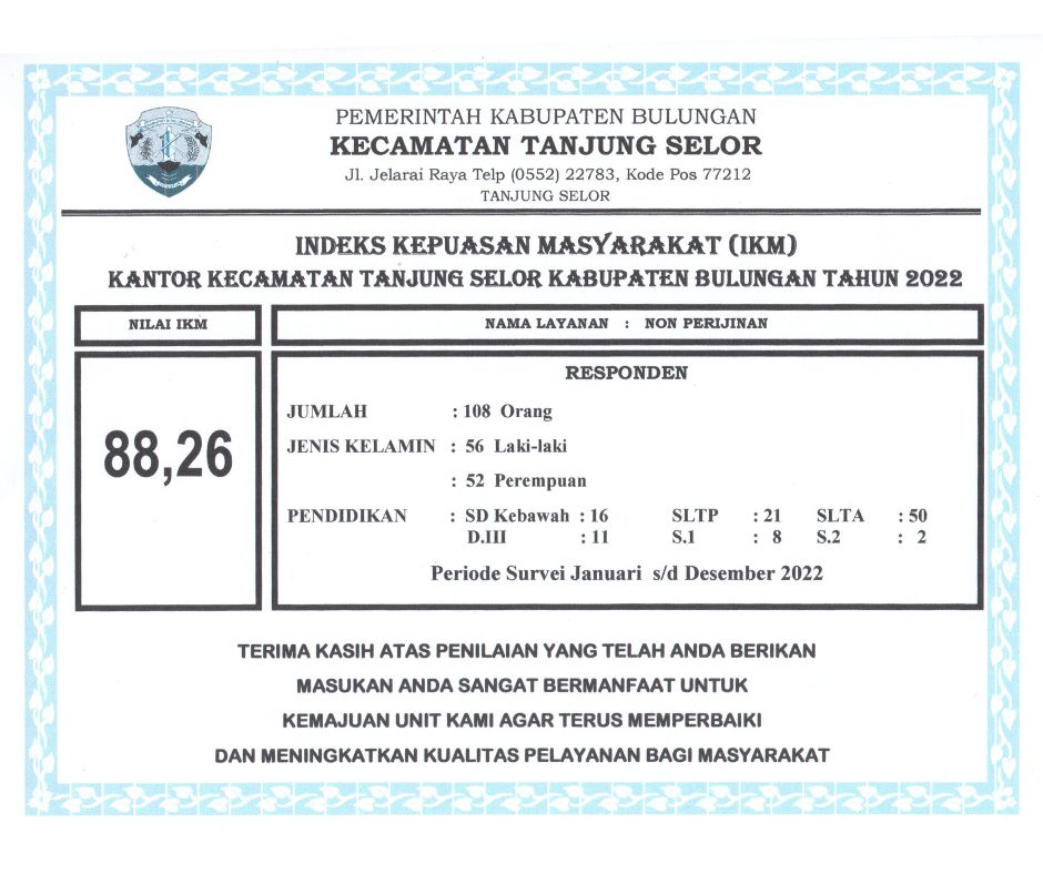 INDEKS KEPUASAN MASYARAKAT (IKM) KANTOR CAMAT TANJUNG SELOR TAHUN 2020, 2021, 2022 Dokumen Lampiran INDEKS
